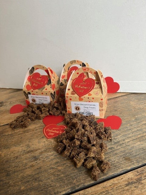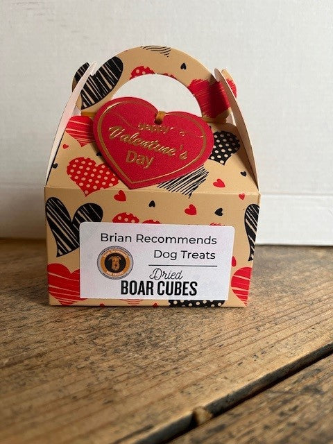 A cute Valentines day box for your best buddy. Filled with 100% Wild Boar Cubes