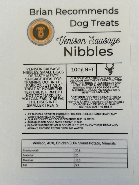 Meaty sausage slices which your dog will love. Made with Venison, and Chicken. This is our top-selling training treat, Dogs love the intense flavour, so it is ideal for recall training when out and about. The texture is firm but not too hard or crumbly so they can easily be snapped into smaller pieces so your dog gets even smaller rewards, more often, for increased good behavior!